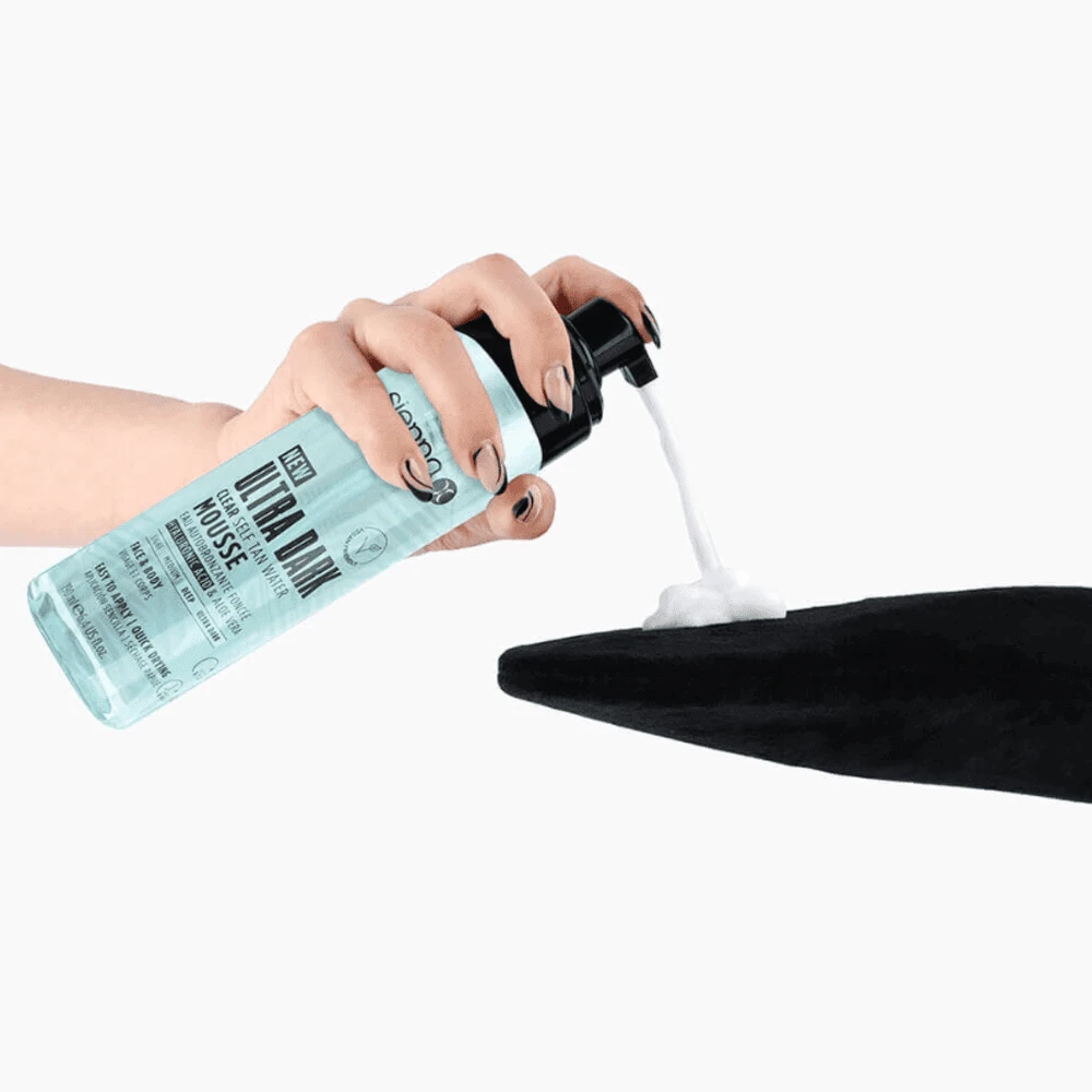 Skincare meets clean, zero development transfer, Ultra Dark tanning. This fast drying water turns into a luxury mousse with a slight sheen for easier application. Formulated for experienced tanners. A vegan formulation with Hyaluronic Acid, maximum tanning actives & Aloe Vera, to ensure you achieve a darker colour.