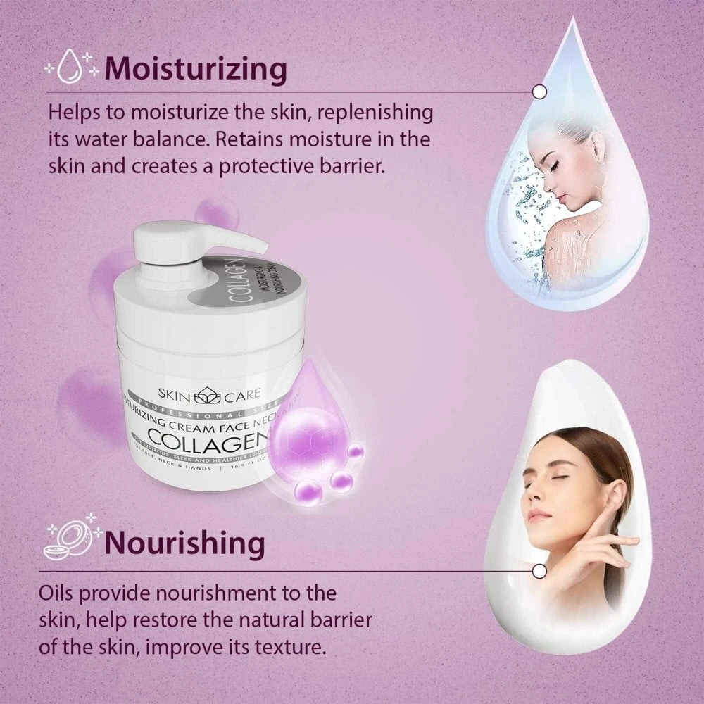 Collagen Benefits – Infused with collagen, our cream helps to reduce the appearance of fine lines and wrinkles, while improving skin texture and tone. It also helps to promote collagen production, leaving your skin looking and feeling more youthful.