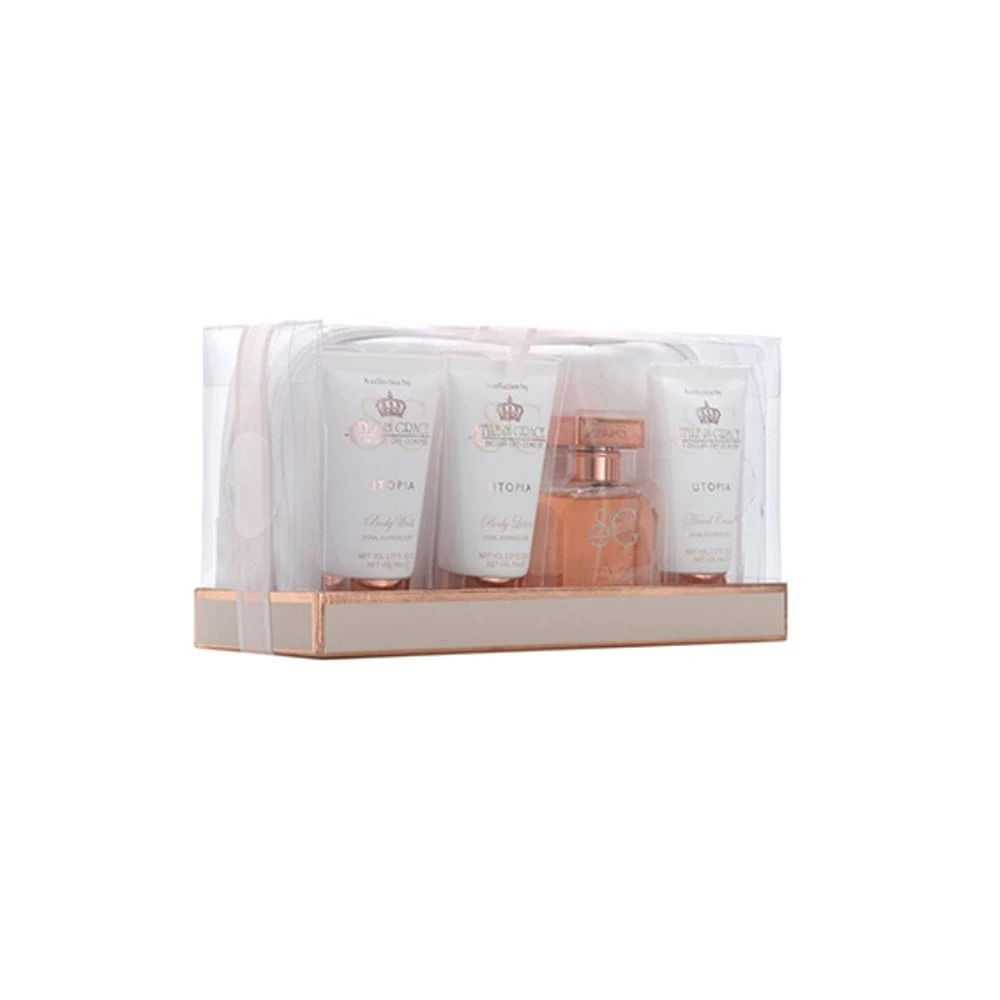 Utopia from Style & Grace is a range of timeless beauty. Dripping with elegance and class the collection shouts of luxury and femininity. The fragrance is a delicious warm blend of florals and fruit with feature notes of spicy pink peppercorn, fused with the sweet scent of mandarin, lily, rose and amber.