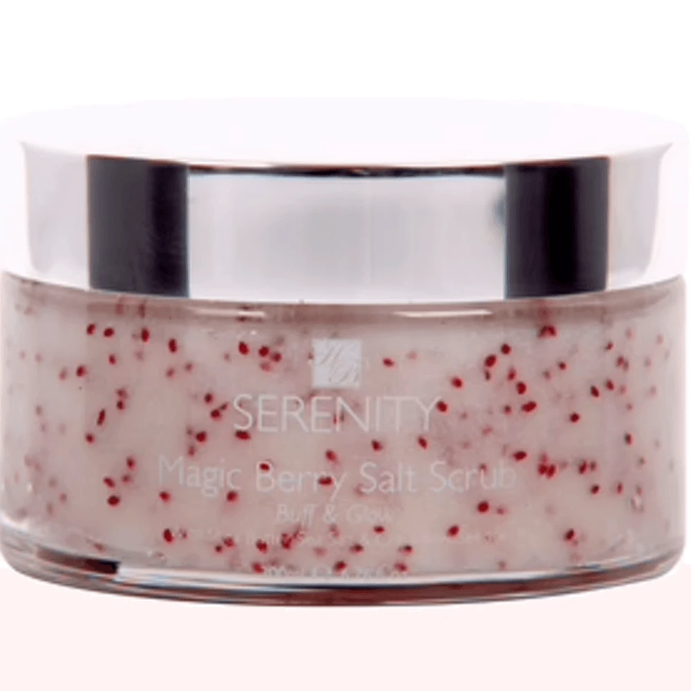 Magic Berry Salt Scrub The Magic Mani-Pedi This multi-tasking scrub transforms and treats, hands and feet to give an instant at home magic mani and perfect pedi. Hands and feet are left beautifully buffed and super smooth. Fingers, toes – anything goes! Infused with an uplifting blend of essential oils to transport your bathroom to an invigorating spa haven. A nourishing blend of Almond, Cranberry, Carrot and Calendula Oil along with Shea and Mango butter, ensure skin is soft and supple, locking in moisture. Sea Salt and Cranberry Seeds buff and polish skin. Whether it is a stolen moment or well deserved indulgence, lose yourself for a moment in total body bliss.